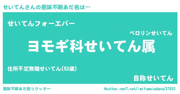| 男性向けラノベタイトル風あだ名 | 『せいてん~年齢イコール彼女いない歴の魔法使い~』 |