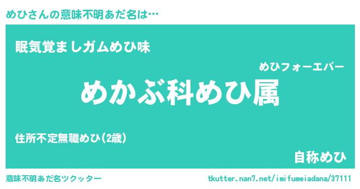 | 男性向けラノベタイトル風あだ名 | 『メヒスレイヤー』『魔法科高校のめひ』 |
