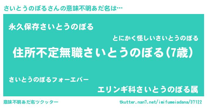 | 女子向けラノベタイトル風あだ名 | 『さいとうのぼるが死なない童話 林檎のさいとうのぼるの診療簿』 |