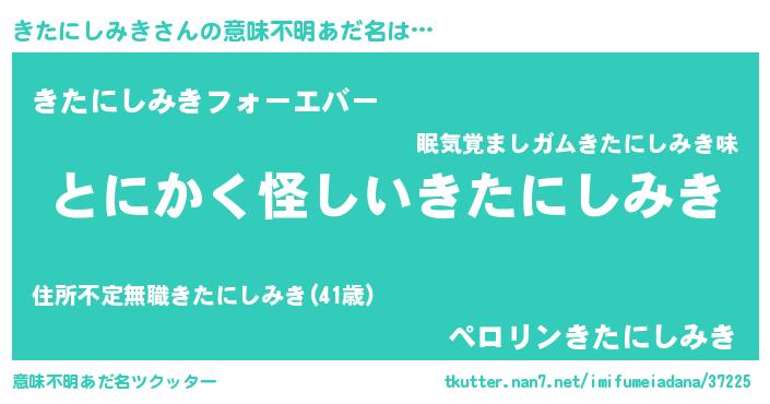 | 男性向けラノベタイトル風あだ名 | 『きたにしみきの嫁は女の子じゃないと思った?』 |
