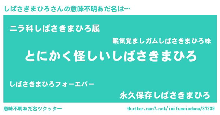 | 胡散臭い通販商品みたいなあだ名 | 『信頼と実績のサプリメント…その名も「しばさきまひろ」』 |