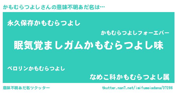 | ヘコむあだ名 | 『かもむらつよし(笑)』『酢こんぶ』 |