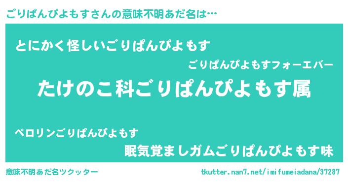 | 男性向けラノベタイトル風あだ名 | 『転生したらごりぱんぴよもすだった件』 |