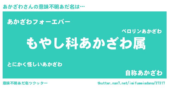 | 男性向けラノベタイトル風あだ名 | 『転生したらあかざわだった件』 |