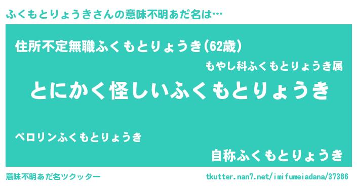 | ポケモン風あだ名 | 『ヒフクモトリョウキ』『フクゴンZ』 |