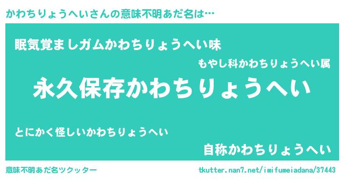 | 男性向けラノベタイトル風あだ名 | 『かわちりょうへいという概念が存在しない退屈な世界 』 |