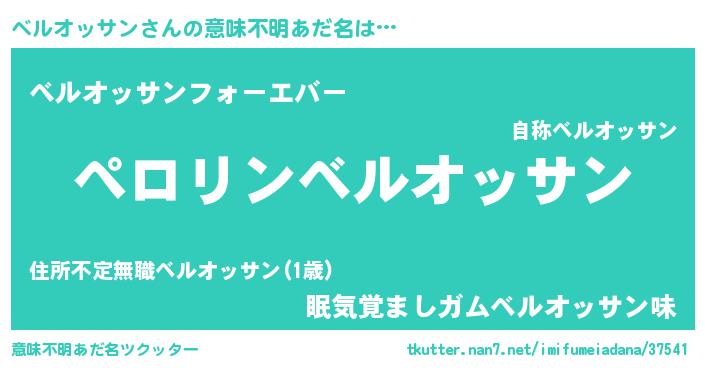 | 男性向けラノベタイトル風あだ名 | 『ベルオッサンに滅ぼされるだけの簡単なお仕事です』 |