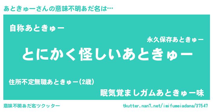 | 胡散臭い通販商品みたいなあだ名 | 『信頼と実績のサプリメント…その名も「あときゅー」』 |