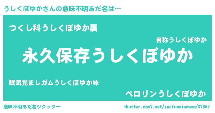 | 男性向けラノベタイトル風あだ名 | 『うしくぼゆかという概念が存在しない退屈な世界 』 |