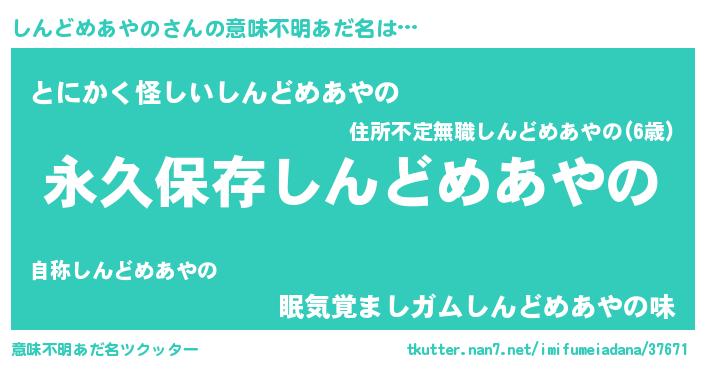 | ヘコむあだ名 | 『しんどめあやの(遠い目)』『しんっちょ』 |