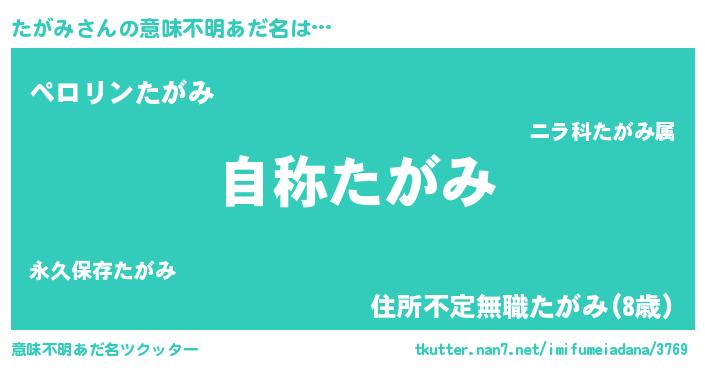 | ヘコむあだ名 | 『たがふぇ~』『たがみ(遠い目)』 |