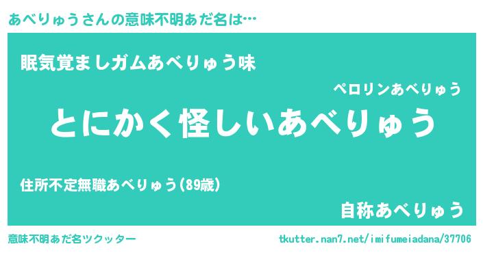 | 女子向けラノベタイトル風あだ名 | 『あべりゅうは平凡を望む』 |