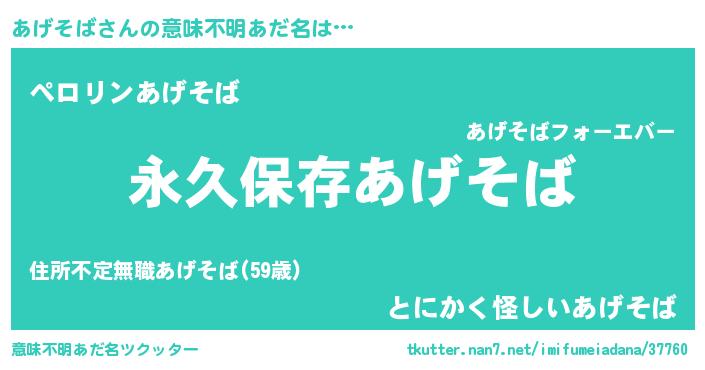 | 胡散臭い通販商品みたいなあだ名 | 『来世でも幸せになれる水素水…その名も「あげそば」』 |
