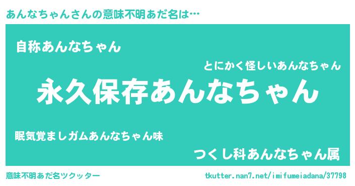 | 胡散臭い通販商品みたいなあだ名 | 『来世でも幸せになれる健康食品…その名も「あんなちゃん」』 |