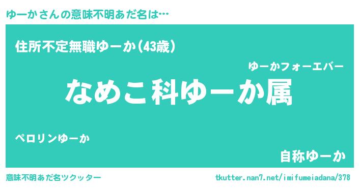 | 胡散臭い通販商品みたいなあだ名 | 『世界中を虜にした100年もののヴィンテージワイン…その名も「ゆーか」』 |