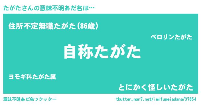 | 女子向けラノベタイトル風あだ名 | 『たがたなんてお断りですっ。』 |