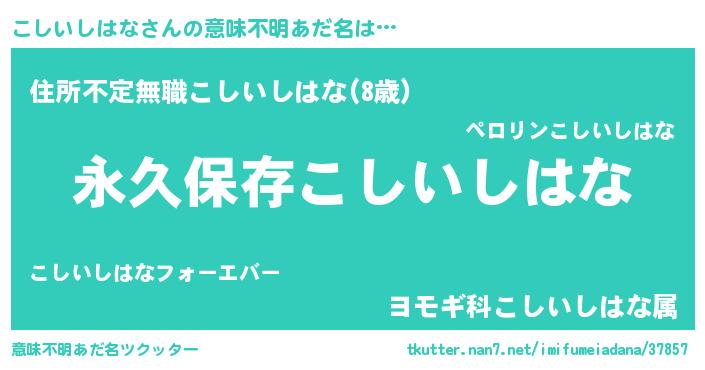 | ヒーロー風カッコイイあだ名 | 『ネオコシイシハナ』『仮面コシダー』 |
