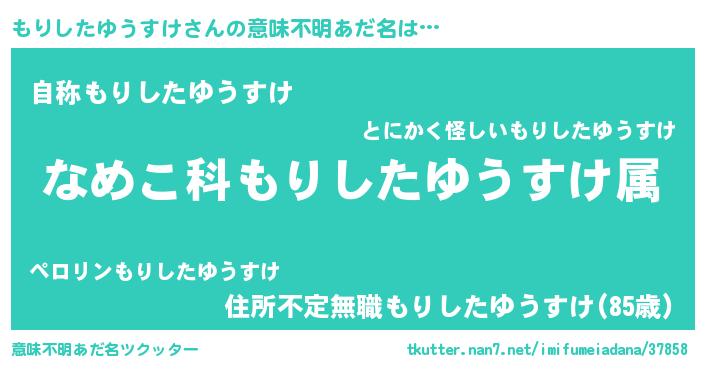 | 男性向けラノベタイトル風あだ名 | 『もりしたゆうすけに滅ぼされるだけの簡単なお仕事です』 |