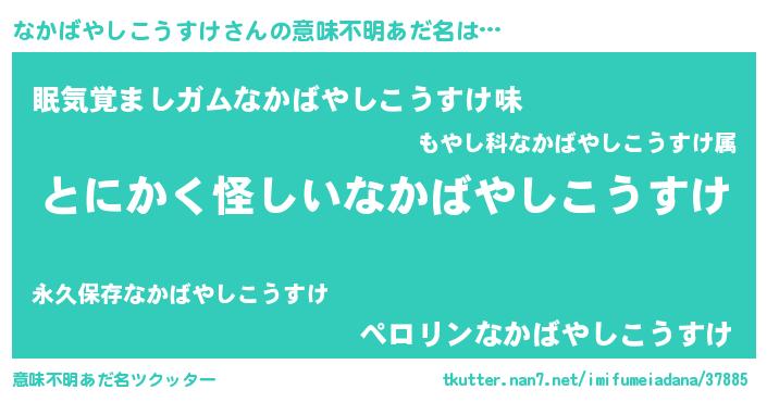 | 男性向けラノベタイトル風あだ名 | 『なかばやしこうすけの嫁は女の子じゃないと思った?』 |