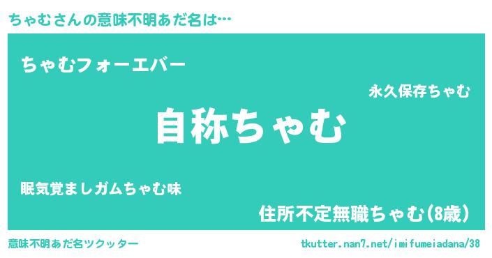 | 女子向けラノベタイトル風あだ名 | 『闇のちゃむ』『ちゃむ伯爵の花嫁』 |
