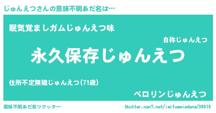 | 男性向けラノベタイトル風あだ名 | 『じゅんえつという概念が存在しない退屈な世界 』 |