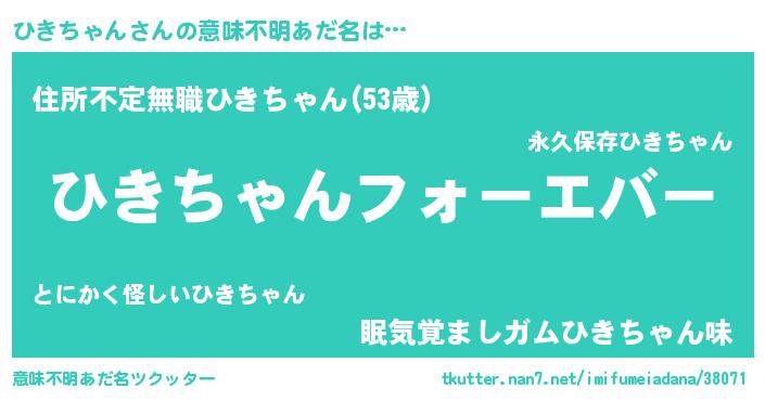| 欧米人風あだ名 | 『ひきちゃんクリステル』 |