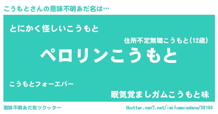 | 男性向けラノベタイトル風あだ名 | 『コウモトアートオンライン』 |