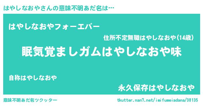 | ヘコむあだ名 | 『酢こんぶ』『はやしなおや(笑)』 |