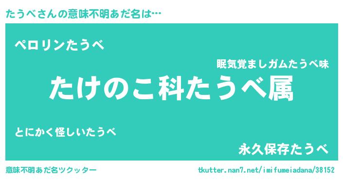 | 男性向けラノベタイトル風あだ名 | 『転生したらたうべだった件』 |
