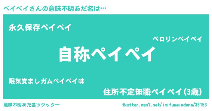 | ヘコむあだ名 | 『ペイペイ(爆)』『ペイもー』『豆乳』 |
