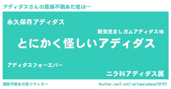 | 男性向けラノベタイトル風あだ名 | 『ダンジョンにアディダスを求めるのは間違っているだろうか』 |