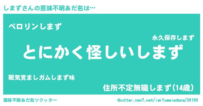 | 男性向けラノベタイトル風あだ名 | 『しまずの嫁は女の子じゃないと思った?』 |