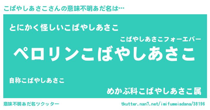 | 男性向けラノベタイトル風あだ名 | 『コバヤシアサコアートオンライン』 |