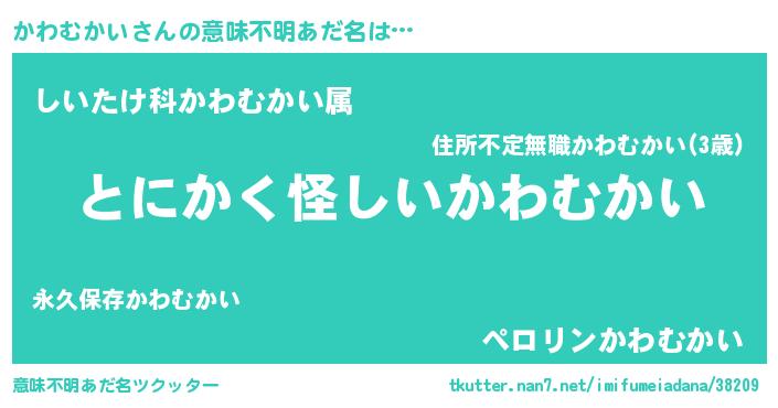 | 胡散臭い通販商品みたいなあだ名 | 『信頼と実績のサプリメント…その名も「かわむかい」』 |