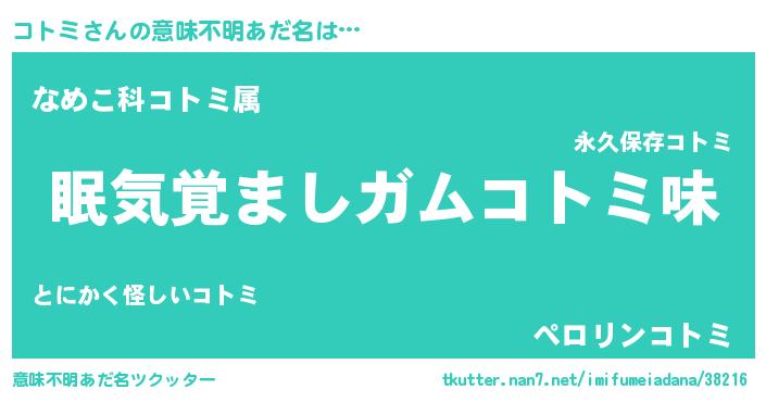 | 男性向けラノベタイトル風あだ名 | 『ノーゲーム・ノーコトミ』 |