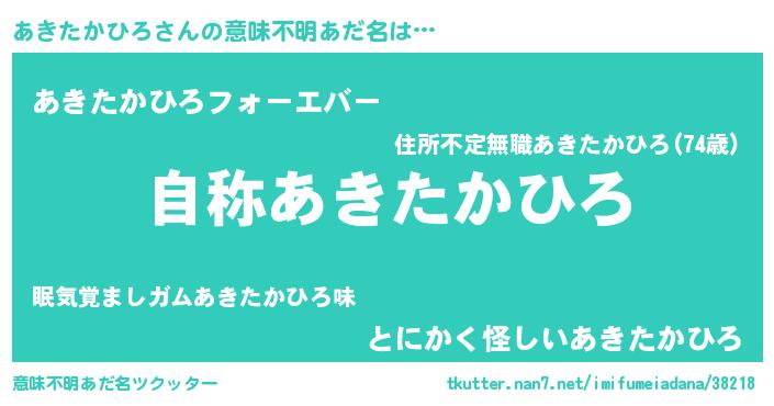 | 女子向けラノベタイトル風あだ名 | 『あきたかひろなんてお断りですっ。』 |