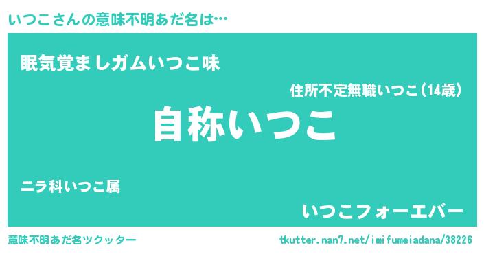 | 欧米人風あだ名 | 『ケンブリッジいつこ』『ダニエルいつこ』 |
