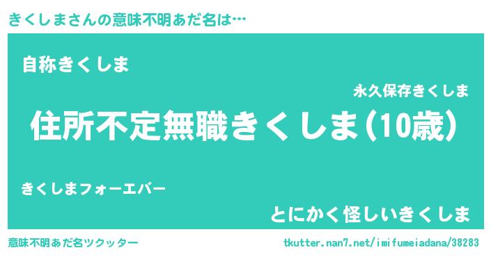 | 男性向けラノベタイトル風あだ名 | 『この素晴らしい世界にきくしまを!』 |