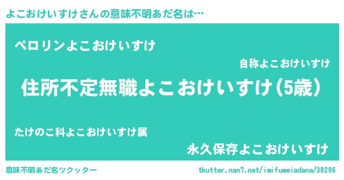 | 男性向けラノベタイトル風あだ名 | 『魔弾の王とよこおけいすけ』 |