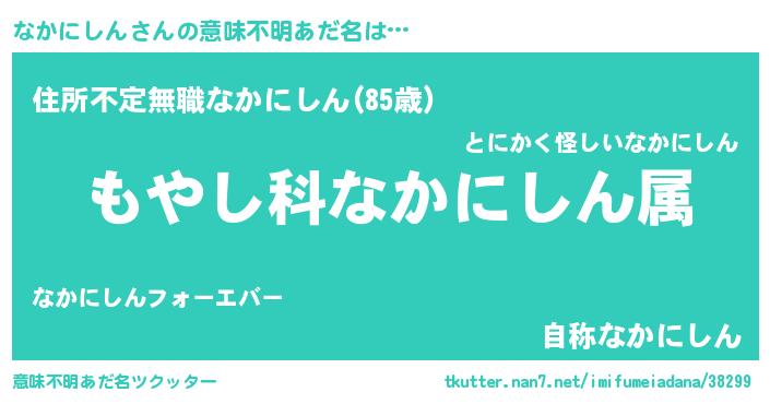 | 男性向けラノベタイトル風あだ名 | 『転生したらなかにしんだった件』 |