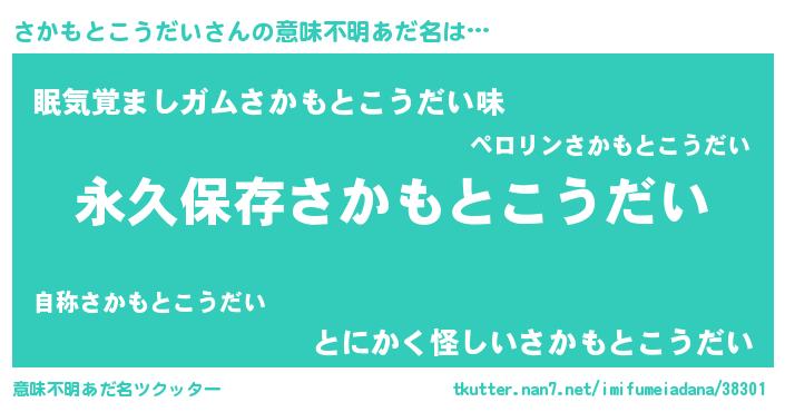 | 胡散臭い通販商品みたいなあだ名 | 『絶対に幸福をもたらす水素水…その名も「さかもとこうだい」』 |