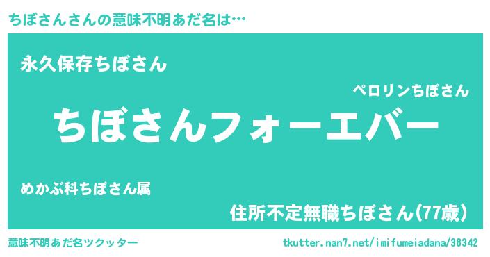 | ヒーロー風カッコイイあだ名 | 『ウルトラちぼさんマン』『ネオチボサン』 |