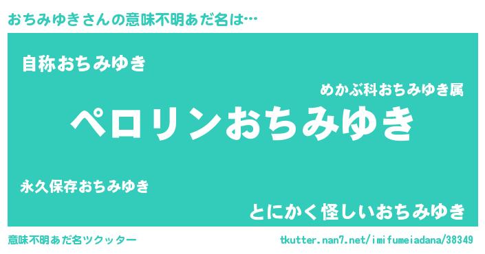 | 男性向けラノベタイトル風あだ名 | 『うちのおちみゆきが世界を掌握している!』 |