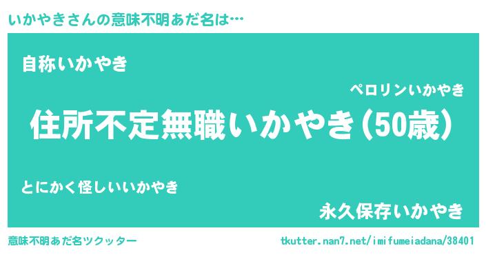 | 男性向けラノベタイトル風あだ名 | 『この素晴らしい世界にいかやきを!』 |