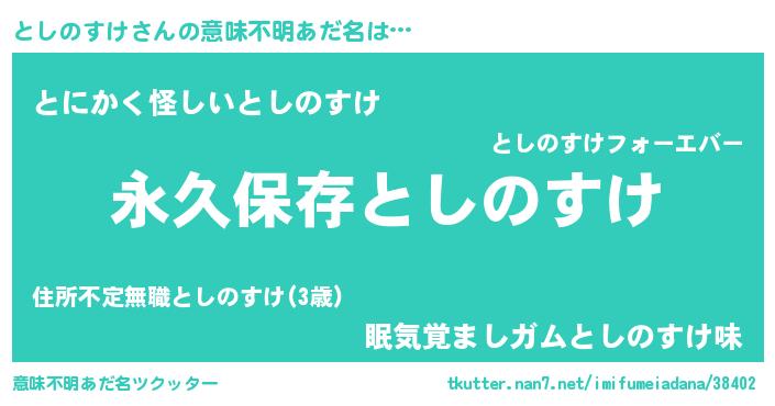 | 胡散臭い通販商品みたいなあだ名 | 『来世でも幸せになれる水素水…その名も「としのすけ」』 |