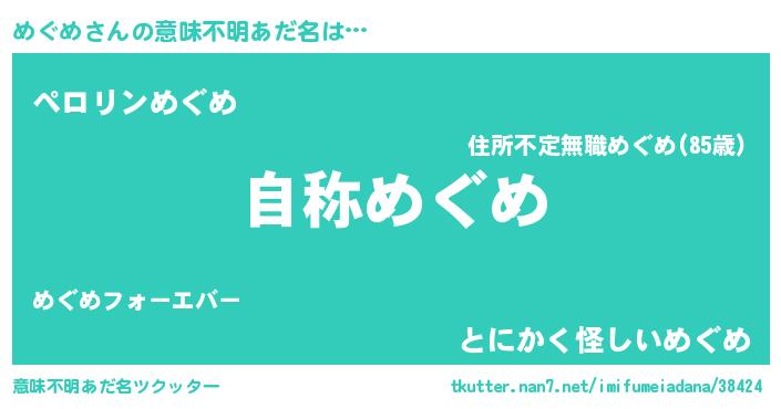 | 男性向けラノベタイトル風あだ名 | 『魔法科高校のめぐめ』『めぐめの憂鬱』 |