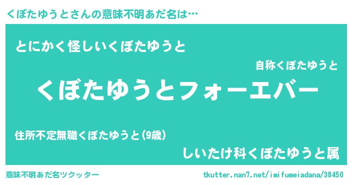| 男性向けラノベタイトル風あだ名 | 『うちのくぼたゆうとが世界を掌握している!』 |