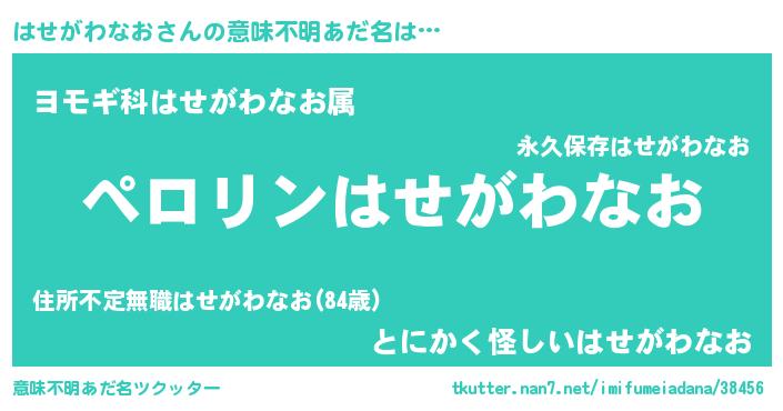 | 男性向けラノベタイトル風あだ名 | 『ハセガワナオアートオンライン』 |