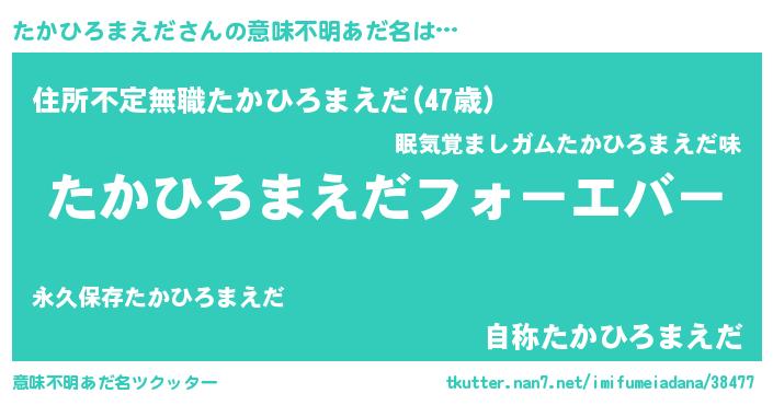 | ファンタジー風あだ名 | 『エターナルタカヒロマエダー』 |