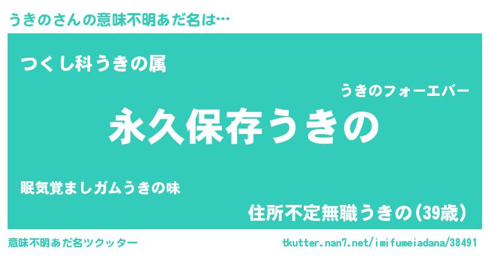 | 男性向けラノベタイトル風あだ名 | 『うきのという概念が存在しない退屈な世界 』 |
